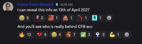 “I can reveal this info on April 13th, 2027. You’ll see who’s really behind the CFB account.”